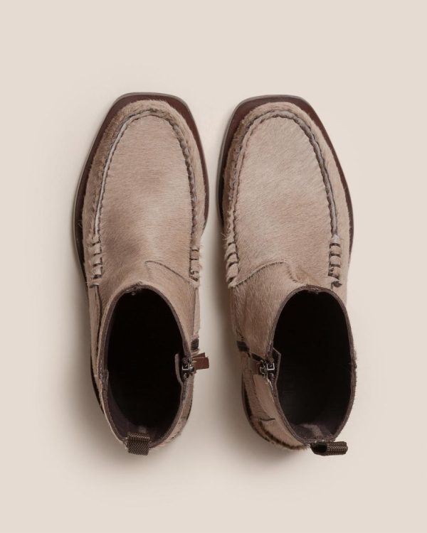 Mid-calf zipped boot, crafted in calf hair. Made in Spain, by uniquely talented artisans, celebrating excellence in craftsmanship.