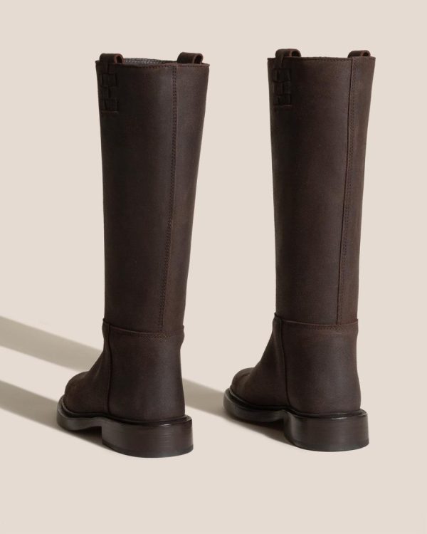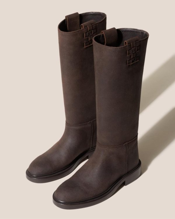 Under the knee pull-on boot with side interwoven detail. Crafted in Spanish suede leather and lined with calf leather lining. The outsole is stitched to the upper for extra durability. Made in Spain by a traditional riding boots factory, celebrating excellence in craftsmanship.