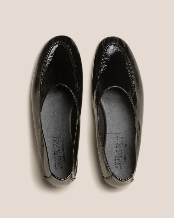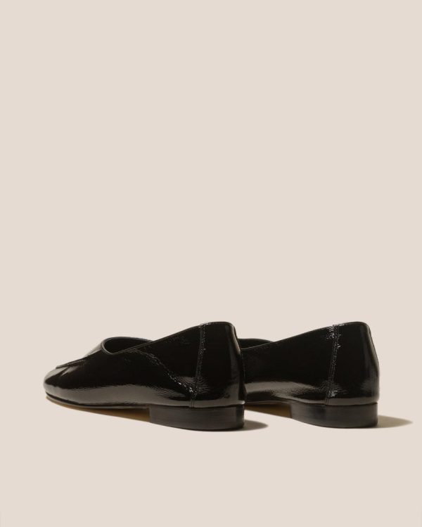 High cut deconstructed loafer crafted in crinkled glossy lambskin. Made in Spain by uniquely talented artisans, celebrating excellence in craftsmanship.